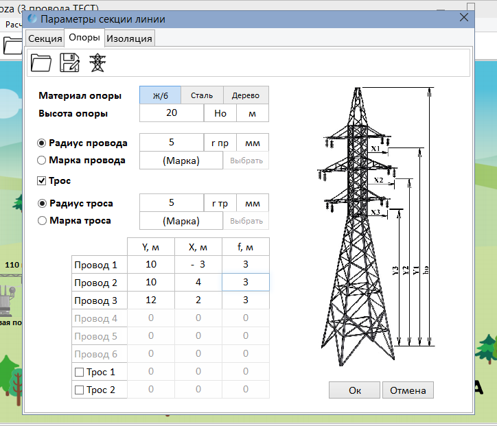 Программа, позволяющая по настроенной конфигурации линии электропередач: